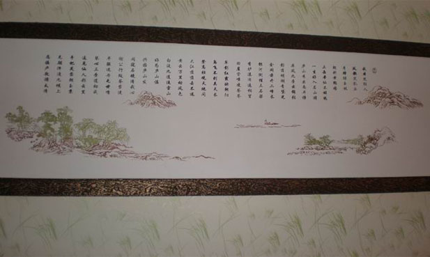??? 液體壁紙裝修效果圖產品,依托于絲網模具,將圖片上的圖案,或者您想要的一首詩,您的座右銘都可以涂刷到墻壁上,通過電腦進行模具的圖案設計,在您的書房,一幅可以體現您自身的詩句,梅蘭竹菊不同的圖案,也可以充分的體現出主人的氣節和品性。